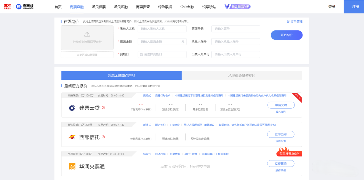 而供应链票据便可以针对上述痛点,有效解决这些问题。具体而言,企业通过商票板平台签发的供票,随着企业间支付结算的流转,能够使核心企业的信用背书穿透至产业链末端的中小微企业,凭借核心企业的信用担保,中小微企业的融资难题也能得到有效解决。此外,其他持票企业还可通过商票板平台推出的“商票直融”产品上传真实贸易背景的票据进行贴现融资,在此模式下,原本线下需要3至5天的融资时间,如今在线上最快2小时便可完成,融资效率得到极大提升。再者平台近期推出的商票资管和资产证券化(ABS/ABN)产品在融资方面也*优势,持票企业可以以未到期的票据作为质押物,向资管产品合作的金融机构申请贷款,秒批秒放,安全高效的满足中小微企业票据融资需求。