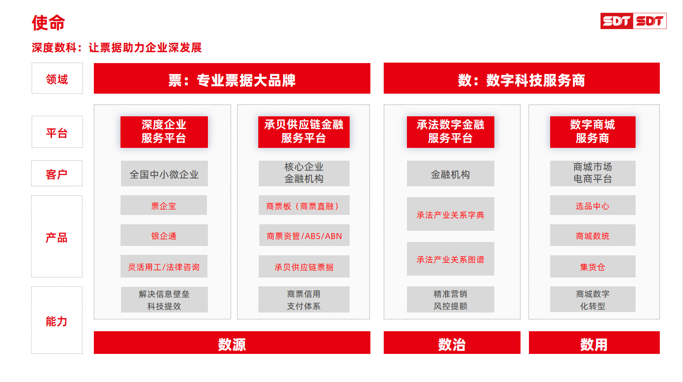 未来,深度数科集团坚定步伐,不断进行技术创新,打造票据新生态,产品迭代紧跟时代,聚焦票据服务,为打造中国票据强企,服务百万级中小微企业的远景目标不断奋进。