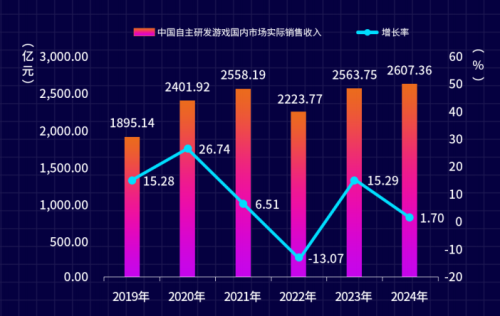 2024年中国自主研发游戏国内市场规模为2607亿元,虽然同比增长1.7%,但属于为数不多的规模超过疫情前的行业之一。