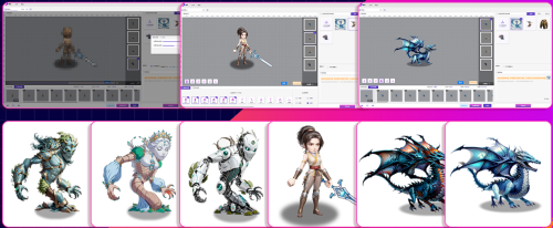 凭借“形意”大模型,游戏开发者只需要选择素材、风格样式,通过一些简单的点击操作,便可以生成一个栩栩如生的动画形象。整个过程所需时间在1分钟之内。而按照“传统工序”,这样一个动作简单的动画形象,制作起来需要的时间可能长达数周。