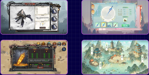在界面生成器层面,恺英推出“绘界”系统,通过大量游戏界面元素训练,可自由生成界面框体,按钮,装饰等元素,可进行整体风格融合及局部细节修改,通过概念图直出游戏整包界面素材。绘界拥有2000多种游戏界面训练元素,可自由生成游戏界面框体按钮装饰等各类元素。