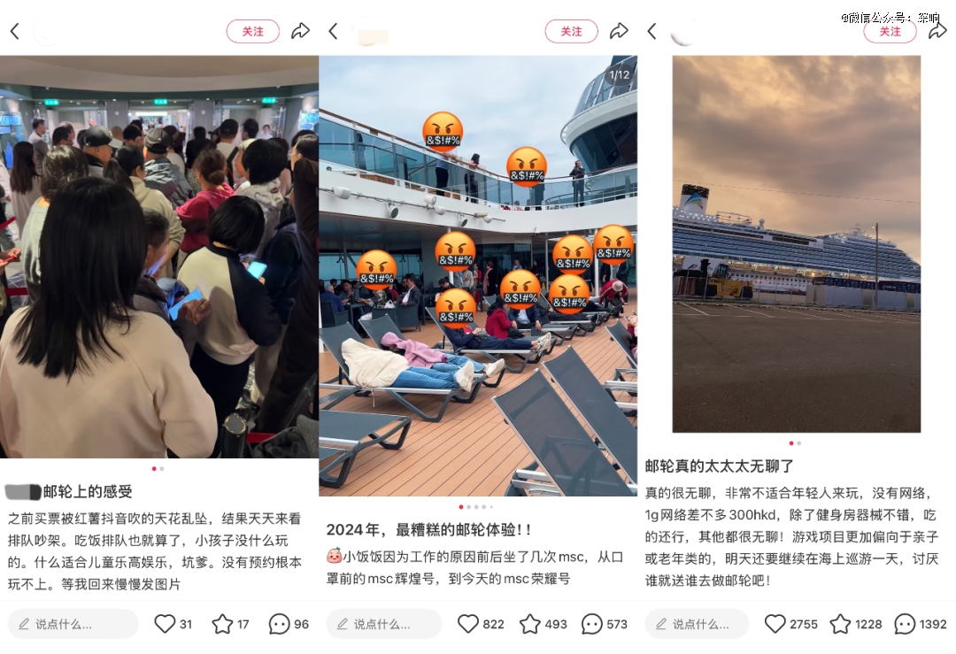 从目前游客在社交媒体上的反馈来看,预定环节存在一些乱象。由于邮轮票务代理极为分散,导致价格差异大,存在价格的不透明与混乱问题。同时市场中还充斥着不少倒卖船票的 “黑代理”。
