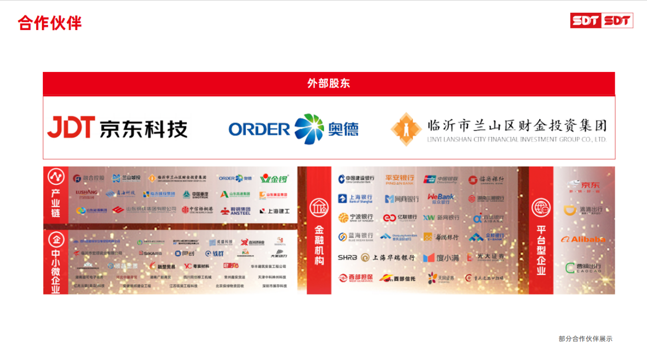 深度数科与众多金融机构、大型企业及政府机构建立了稳固的合作网络,这些合作伙伴为公司的业务发展提供了坚实支撑。秉持合作共赢的原则,深度数科致力于为广大用户提供卓 越服务。凭借在科技普惠和票据服务领域的领 先地位,公司赢得了京东、奥德集团以及兰山财金等战略股东的支持。深度数科已成功服务于青岛融合控股、鞍钢集团、中信梧桐港、金锣集团等关键企业,并与超过40家金融机构展开深度合作,涵盖了建设银行、平安银行等大型银行,以及上海银行、临商银行、恒丰银行等城市商业银行,还包括微众银行、网商银行等互联网银行。在推进中国大集平台建设的同时,深度数科还与京东、滴滴、阿里巴巴等平台型企业建立了战略合作伙伴关系。通过与多方战略合作伙伴的紧密合作,推动科技普惠服务,深度数科在票据服务领域确立领 先地位,为中小微企业及核心企业提供全面数字科技服务。