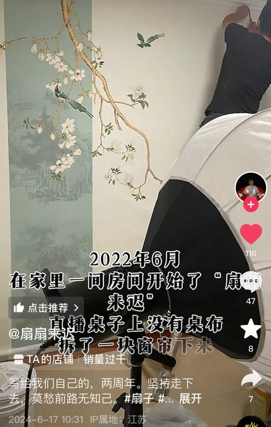 离开扇厂后,汤晓红曾与一位电商老板合作,对方提议在抖音直播推广苏扇。但很快,双方因价格策略的分歧而分道扬镳。