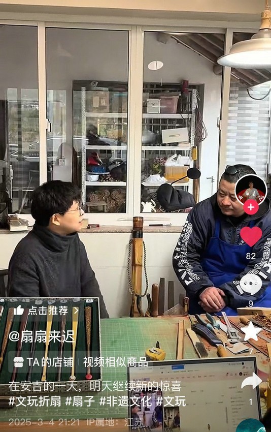 她也理解师傅们的顾虑。“如果是虚头巴脑的直播间,他们肯定不愿意去,他们在观察我们是不是真的在认真做事。而我们请他们,也不是为了卖多少扇子,还是为了介绍苏扇。”