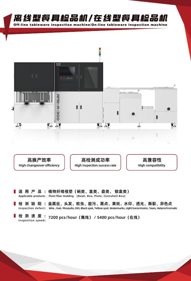 配天AOI植物纤维餐具餐盒系列产品,为植物纤维餐具外观检测提供全新的智能解决方案,用技术优势为行业生产商带来性能优势、成本优势。