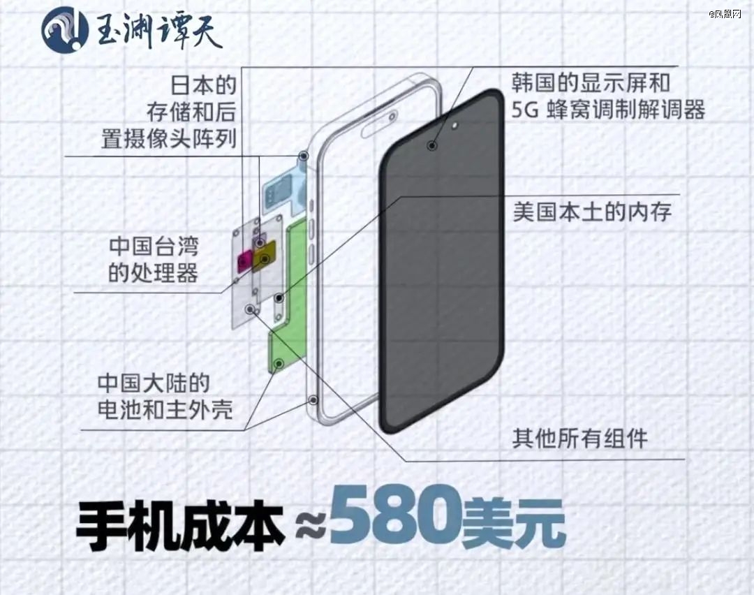 玉渊谭天写道,如果把iPhone搬回美国本土制造,成本也不会降低,美国企业将为很多进口零部件支付关税,根据特朗普加征关税的税率计算,即使只算一些重要零部件,来自各地的关税,会让每一部手机成本增加近100美元,更不用说在美国组装一台iPhone的人工成本比中国高出不少,按照美媒自己的估算,整个算下来的成本可能比从中国进口还多。