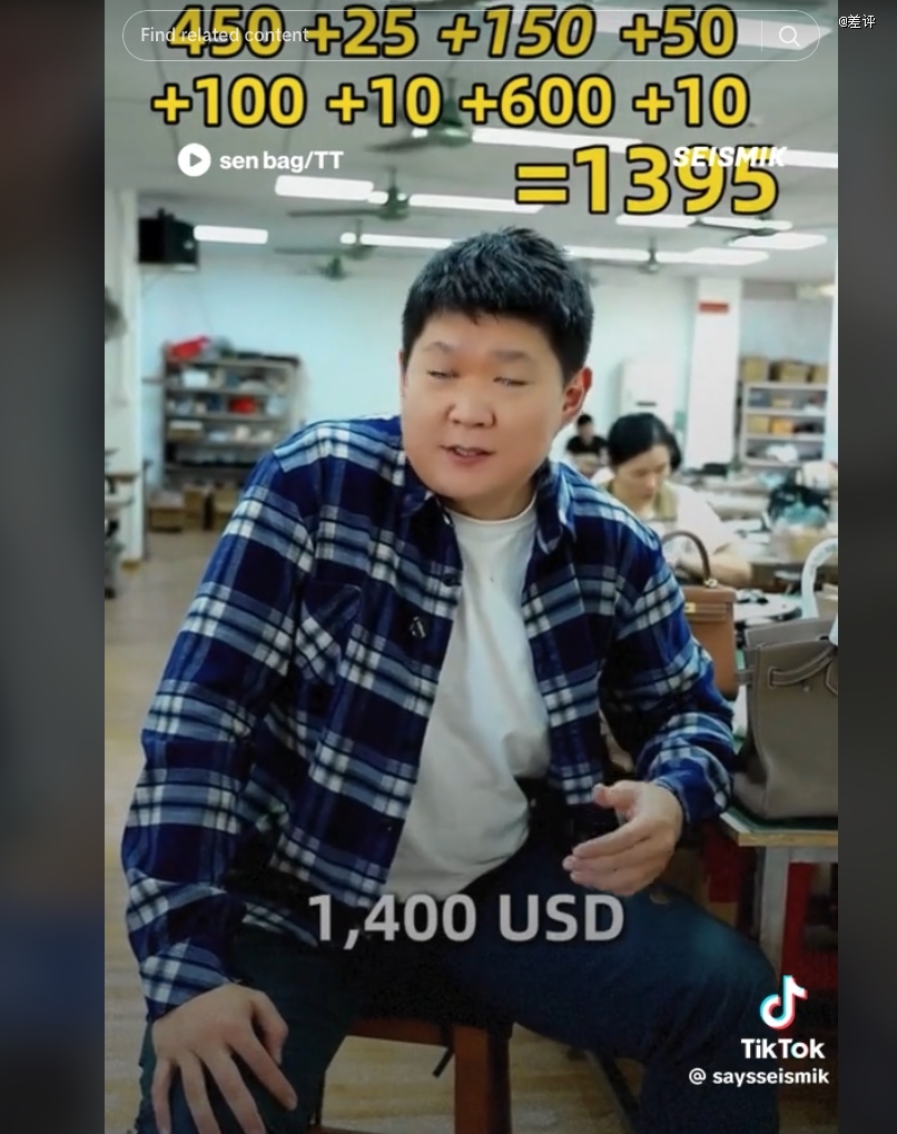 “爱马仕卖38000刀的Berkin包,在中国工厂的成本只需1400刀”。这位老哥把自家工厂做一只Berkin的生产成本一一列了出来,满打满算成本价不到1400刀。