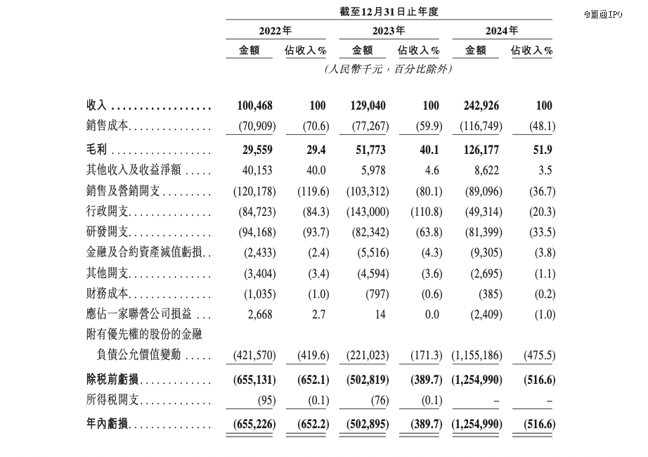 由此,报告期内,滴普科技收入分别约为1.00亿、1.29亿、2.43亿,复合年均增长率为55.5%;毛利分别约为2955.9万、5177.3万、1.26亿元,毛利率分别为29.4%、40.1%、51.9%。