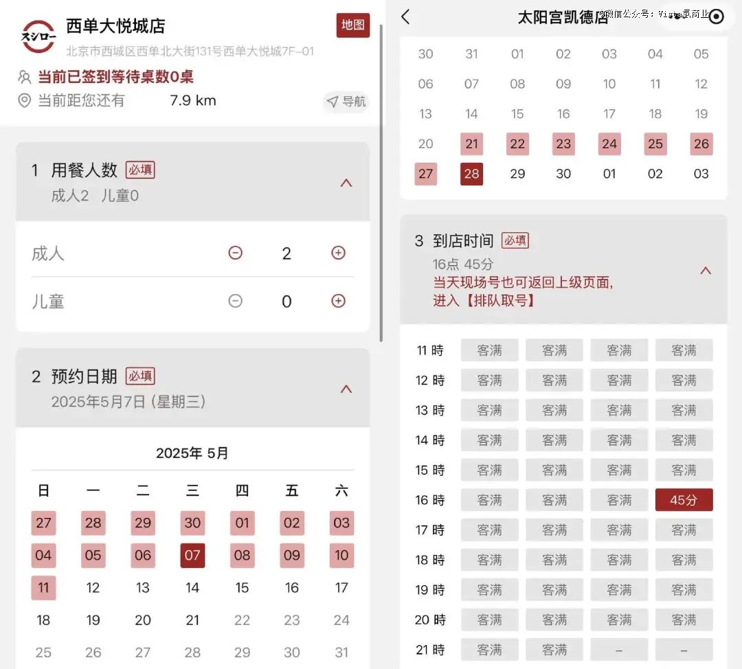 小程序上有2种排队方式,当天拿号和预约排队。本想着周末去吃一顿,没想到市中心的三家店预约日期已经到了一周以后,其中最夸张的西单大悦城店直接排到了一个月后。