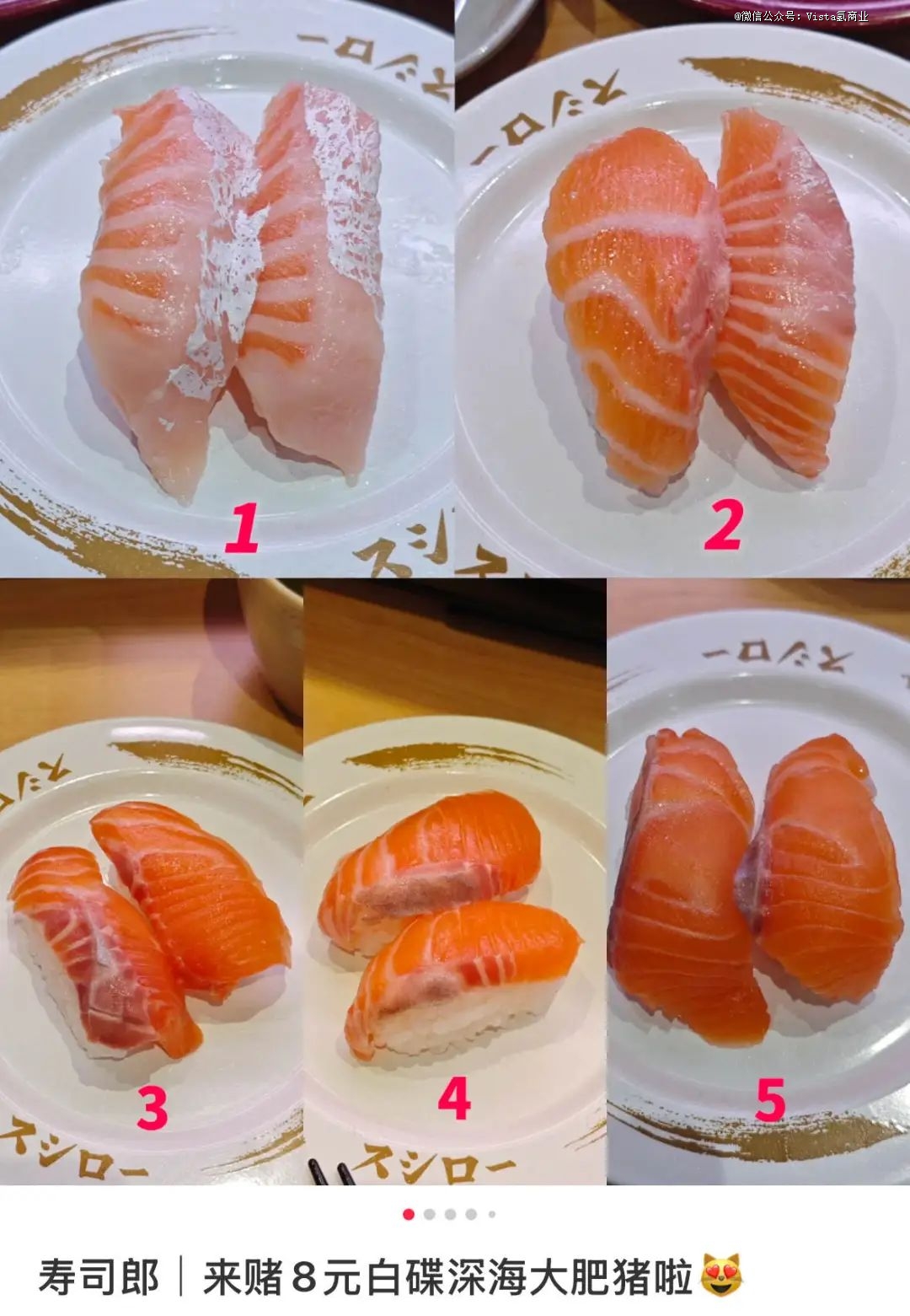 不过,寿司郎的食材也经常出现不稳定现象,尤其是三文鱼,同样的8块钱品质天差地别,为了吃到深海大肥猪,社交平台上还出现了许多赌鱼攻略。