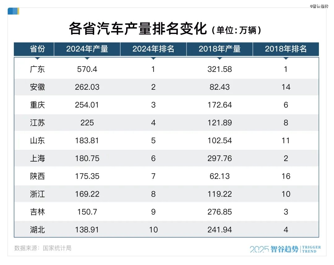 如果今年安徽真的接棒广东,坐稳“中国汽车产量*省”,那不仅是长三角的胜利,也隐隐透露出“世界工厂”的新动向。