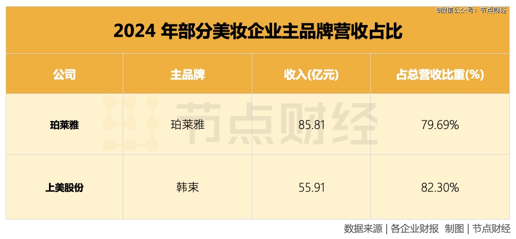 同期,珀莱雅、贝泰妮、上美股份护肤类收入占比分别为83.68%、83.71%、87.2%,若加上彩妆,前二者来自美妆的贡献比高达90%+。