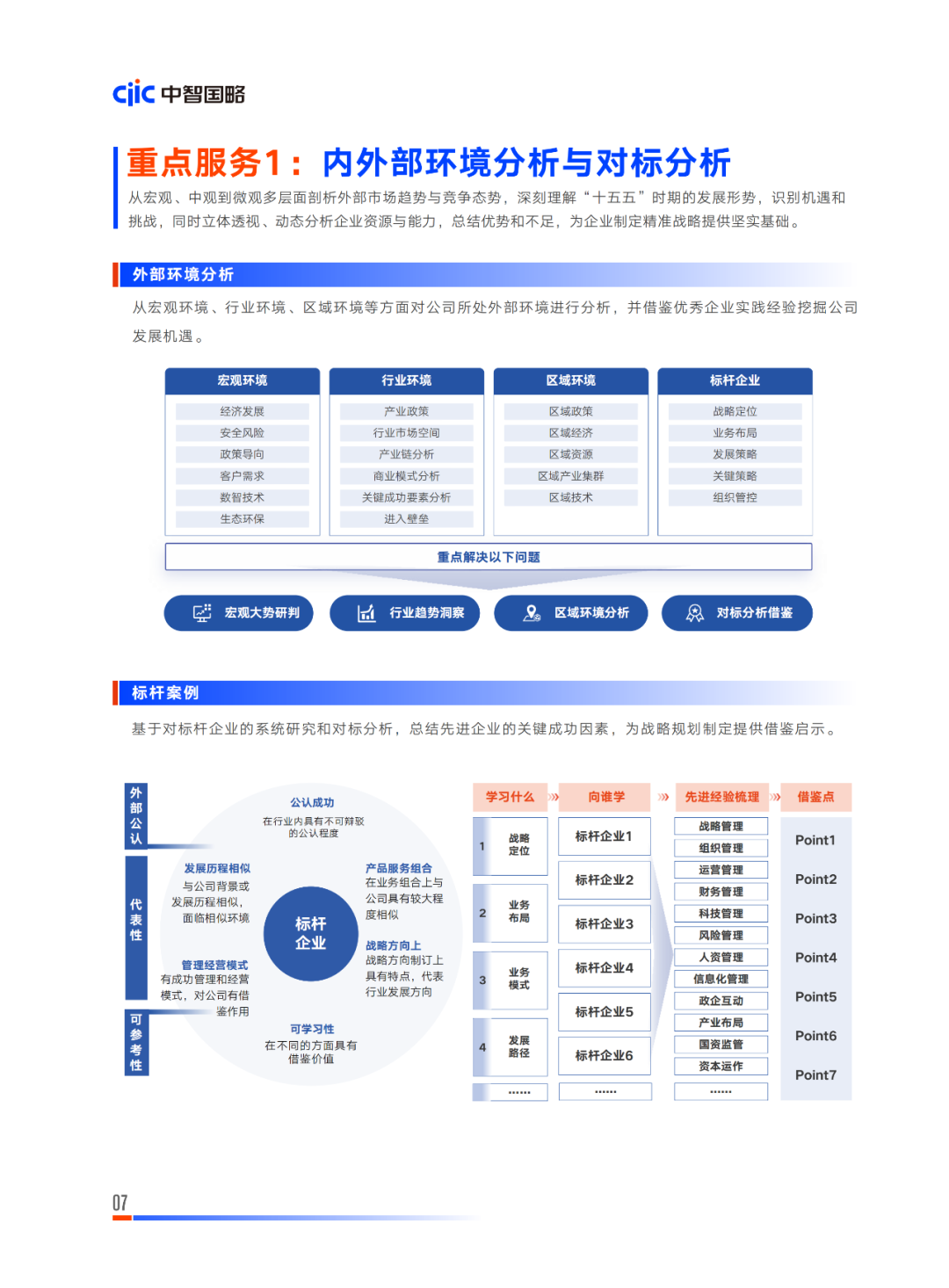 中智国略强调“战略规划-战略保障-战略执行”三位一体,将战略规划的制定、战略保障的资源配置与战略执行的落地实施紧密形成一个有机整体,提升战略规划和战略执行的联动性,确保企业“十五五” 战略规划编制的有效性和战略执行实现的落地性,重点服务包括“十五五”战略规划、战略性新兴产业和未来产业规划、科技创新规划、人力资源规划、组织管控体系、卓 越运营体系、建设世界一流企业顶层设计、战略解码与执行等,以全局视野和落地服务为企业在“十五五”期间高质量发展注入强劲动力。