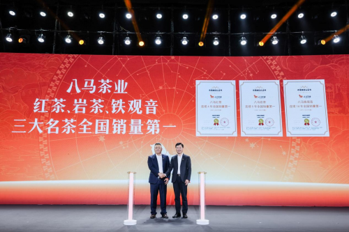 △八马茶业获尚普咨询颁发的“红茶、岩茶、铁观音 三大名茶全国销量第 一”市场地位认证
