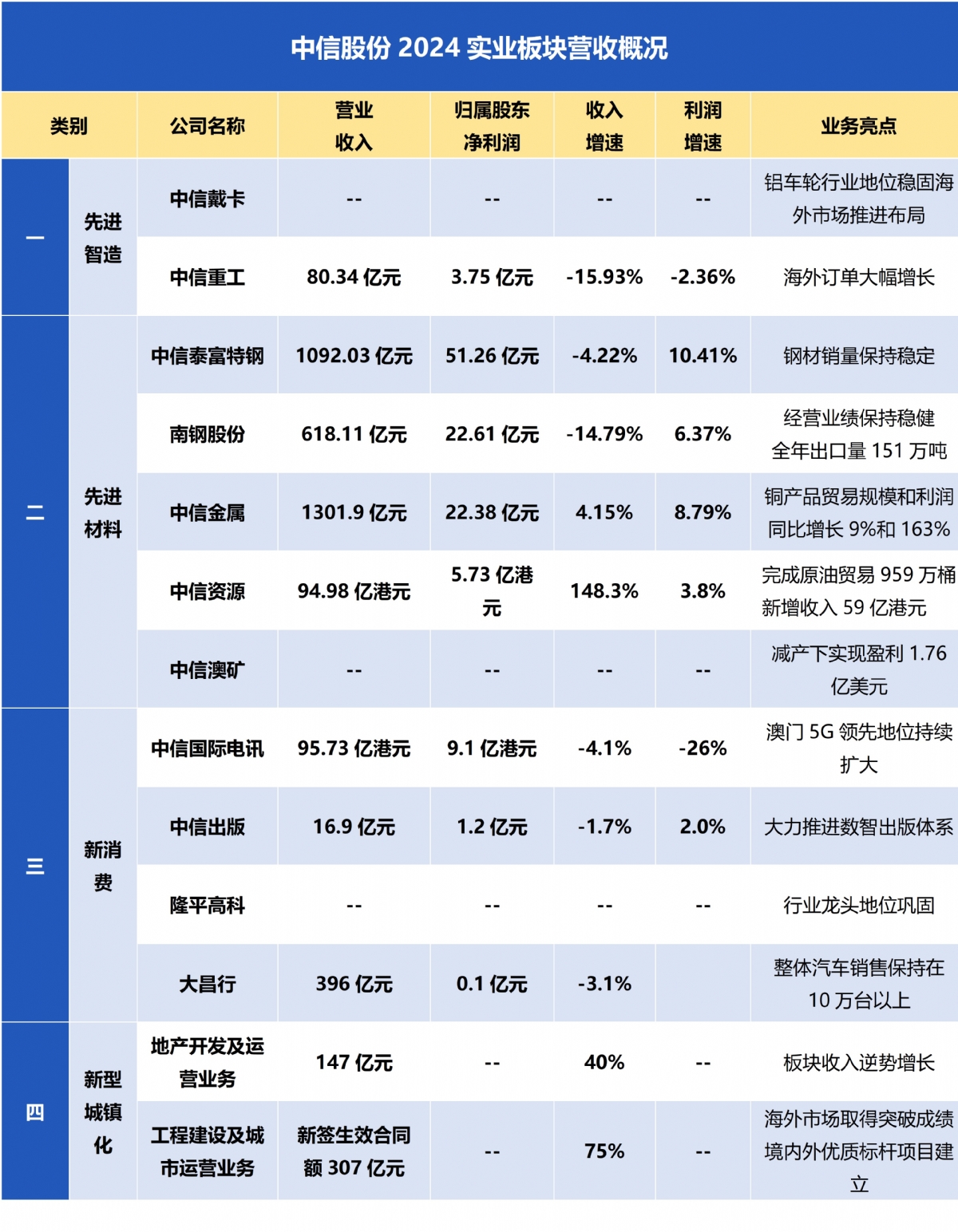 *数据来源,2024年中信股份年度业绩报告,旗下上市公司2024年年度业绩报告