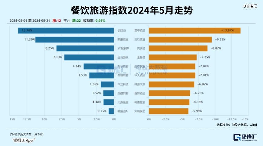 以去年为例,2024年五一过后的一个月中,餐饮旅游指数整体下跌近4%,绝大多数餐饮旅游巨头股价大幅下跌。