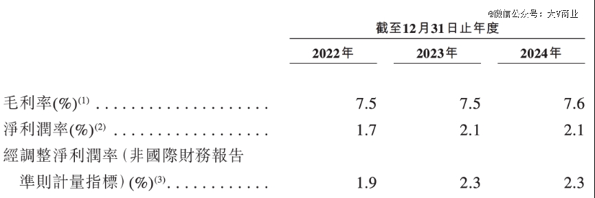 但是即便如此,量贩零食的利润率也较低。上面我们提到,2024年鸣鸣很忙毛利率为7.6%基本2022年和2023年持平,净利率为2.1%。