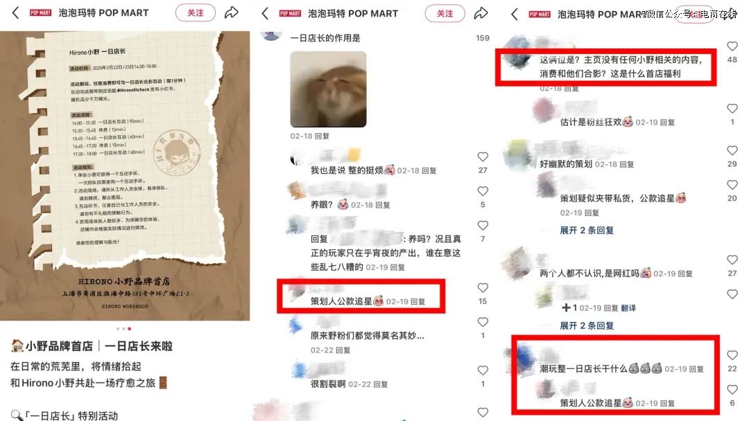 这意味着,当品牌一味地复制“一日店长”模式,而忽略了品牌的自身调性的时候,不仅无法吸引新的客群达到破圈,甚至还会伤害忠实粉丝的感情。特别是像泡泡玛特这类以IP为核心的品牌,粉丝们自然会对品牌活动的“纯度”要求更苛刻——他们不能容忍任何“不够懂IP”的人来吃这份IP红利。