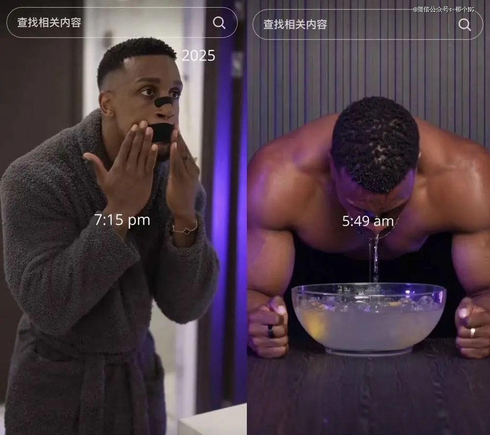 当他拿出一根香蕉的时候,大多数观众还以为是健身后的快碳补充,我们恰恰错了——他用香蕉皮细细擦拭皮肤,为了达到美容的效果。