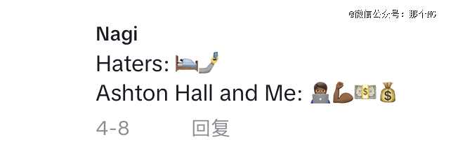 一开始,Ashton的粉丝会用一系列emoji反击黑子,大意是:“黑子躺在床上睡大觉,而我和Ashton一起挣圆子”。
