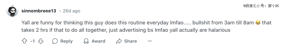 无非就是在布置好的豪宅摄影棚里,打开摄像头,拍摄妆容精致的自己假装在凌晨3点醒来,用两个小时的时间表演一套“Morning Routine”组合拳,然后下班收工回家睡觉。