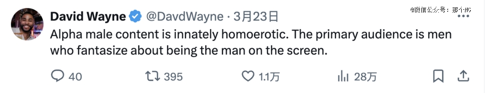 本质上,这套叙事是一种男性对男性的擦边视频,都是男性关于*alpha的美好幻想。而以Ashton为代表的网红们,更像是表演男子气概的宫廷小丑。