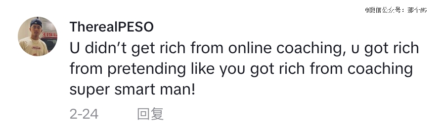每周在健身房70个小时的高强度工作,让他感到非常挫败。他意识到打工根本赚不了钱,一份高中学历也换不来跑车豪宅,于是他辞掉了健身房的工作,成为一名专职网红。