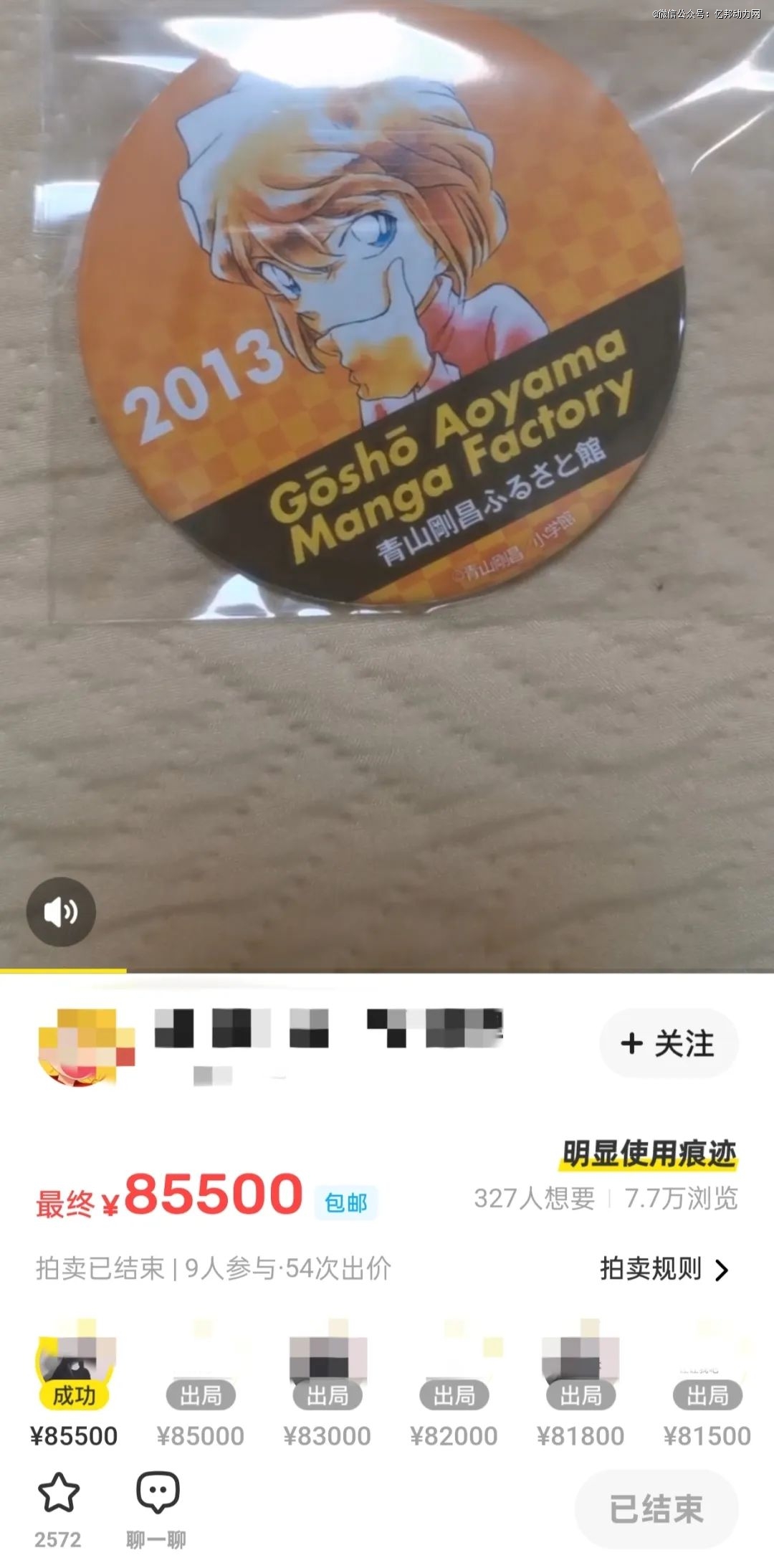 在某平台最终以85500元成交的吧唧