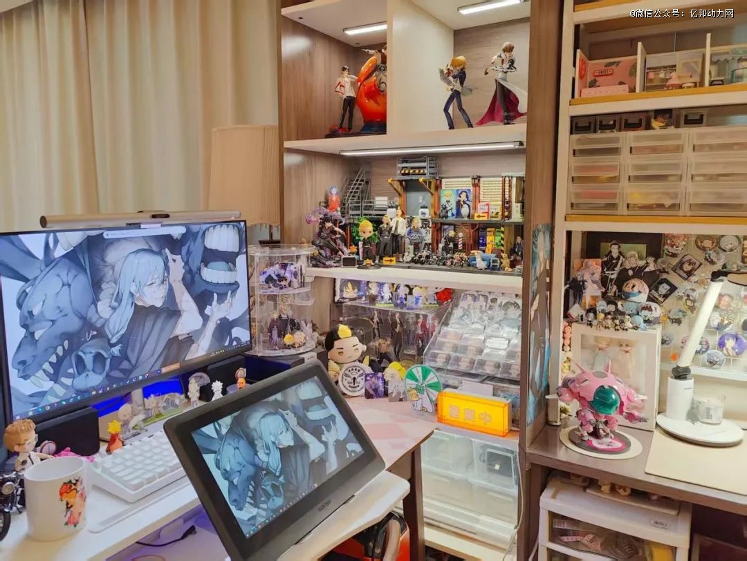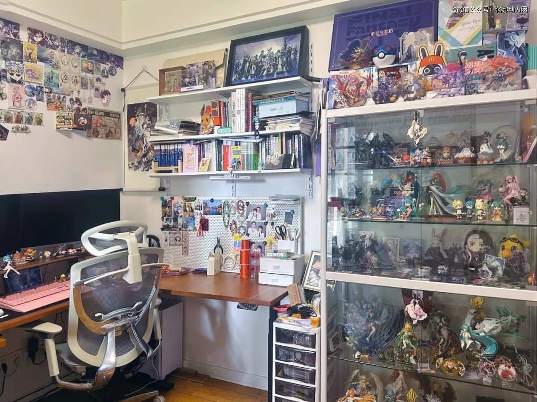 所以当她喜欢的作品(电影、电视剧、动漫、游戏等)衍生出一些谷子,她总是忍不住买买买。“把它们摆在柜子里、桌子上,这些抬眼就能看到、欣赏到它们的地方。”