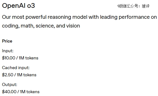 价格还不低,拿 OpenAI 的 o3 举例,每百万个字符输入要收 10 刀,缓存中间结果要 2.5 刀,输出要 40 刀。