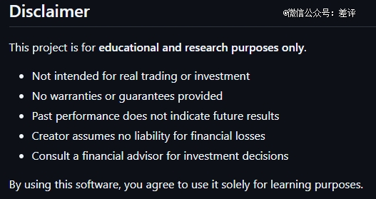 作者也在项目介绍中强调,这个项目只能用于教育或研究用途,不适用于真实交易和投资。