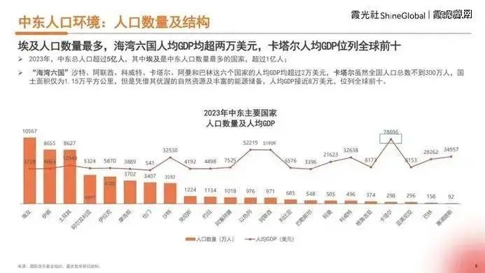 与此同时,区域经济发展势头强劲:海湾六国中,沙特和阿联酋表现尤为突出,预计GDP增速分别达4.4%~5.3%和4.9%,而且这六个国家的人均GDP均超过2万美元,卡塔尔人均GDP更高达7.86万美元。随着迪拜杰贝阿里港、沙特红海旅游项目等跨境基础设施的推进,中东作为连接欧亚非三大洲的贸易枢纽地位进一步巩固。