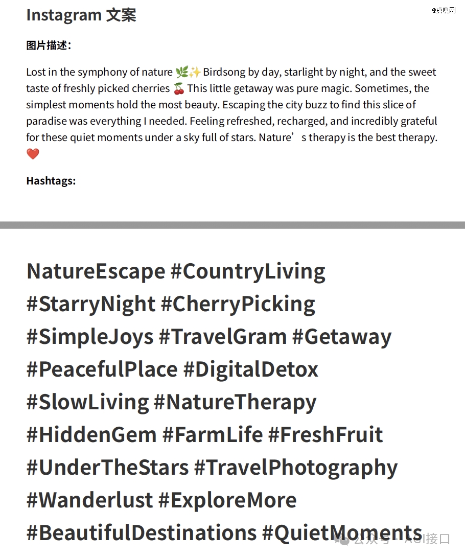 Manus为Instagram写的文案则直接切换成了英文,包括tag,但也明显可以看到,文字字号大了很多,标题和正文的内容没有区别开来,不免有点遗憾。