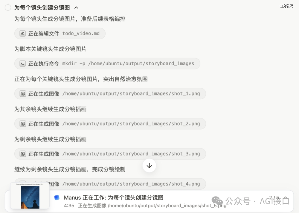 并且,由于我要求画出分镜,Manus还生成了png图片,看起来很未来可期。