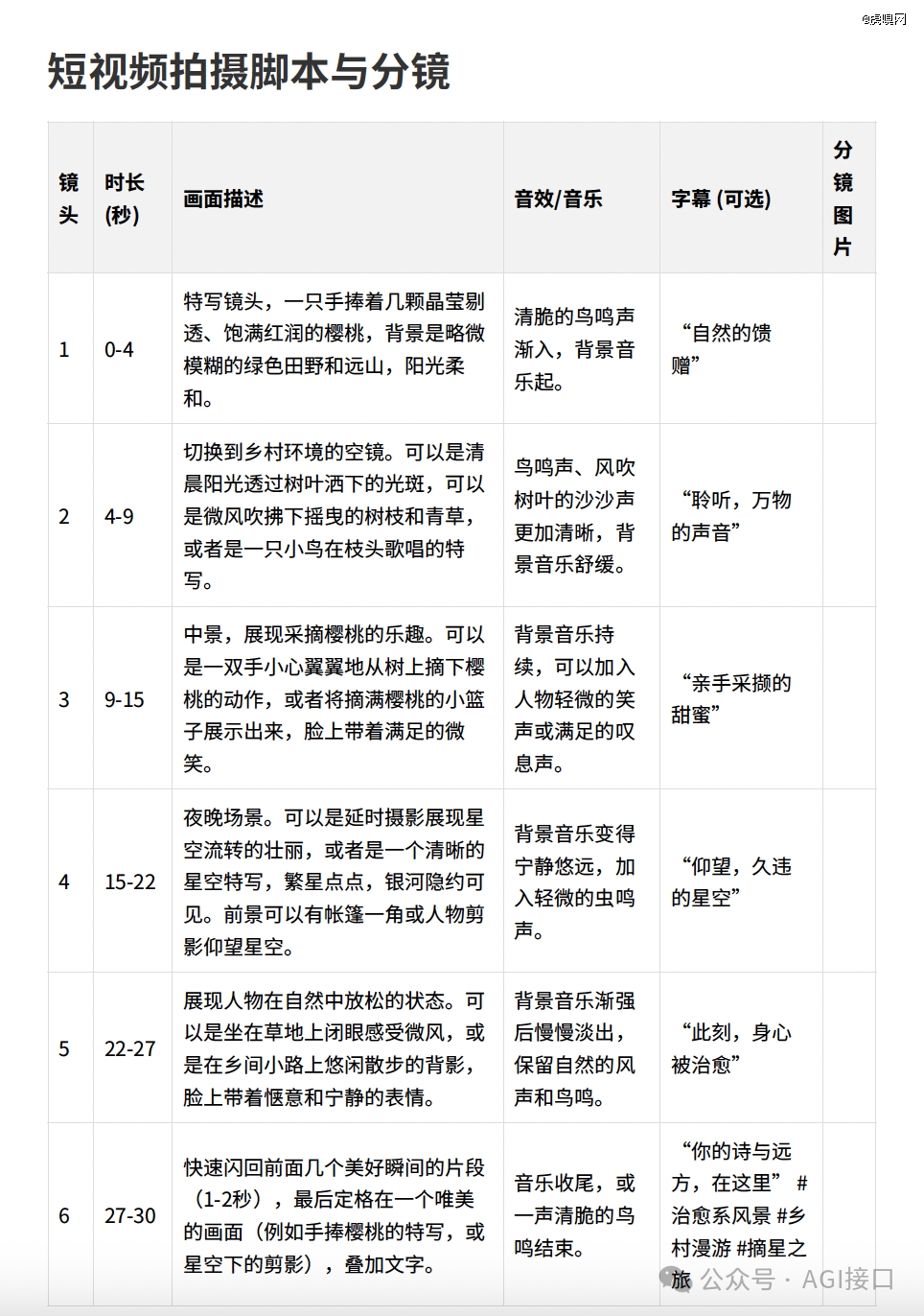prompt2为:根据以上内容帮我生成一个30秒短视频拍摄脚本,并画出分镜,要求以表格的形式呈现。