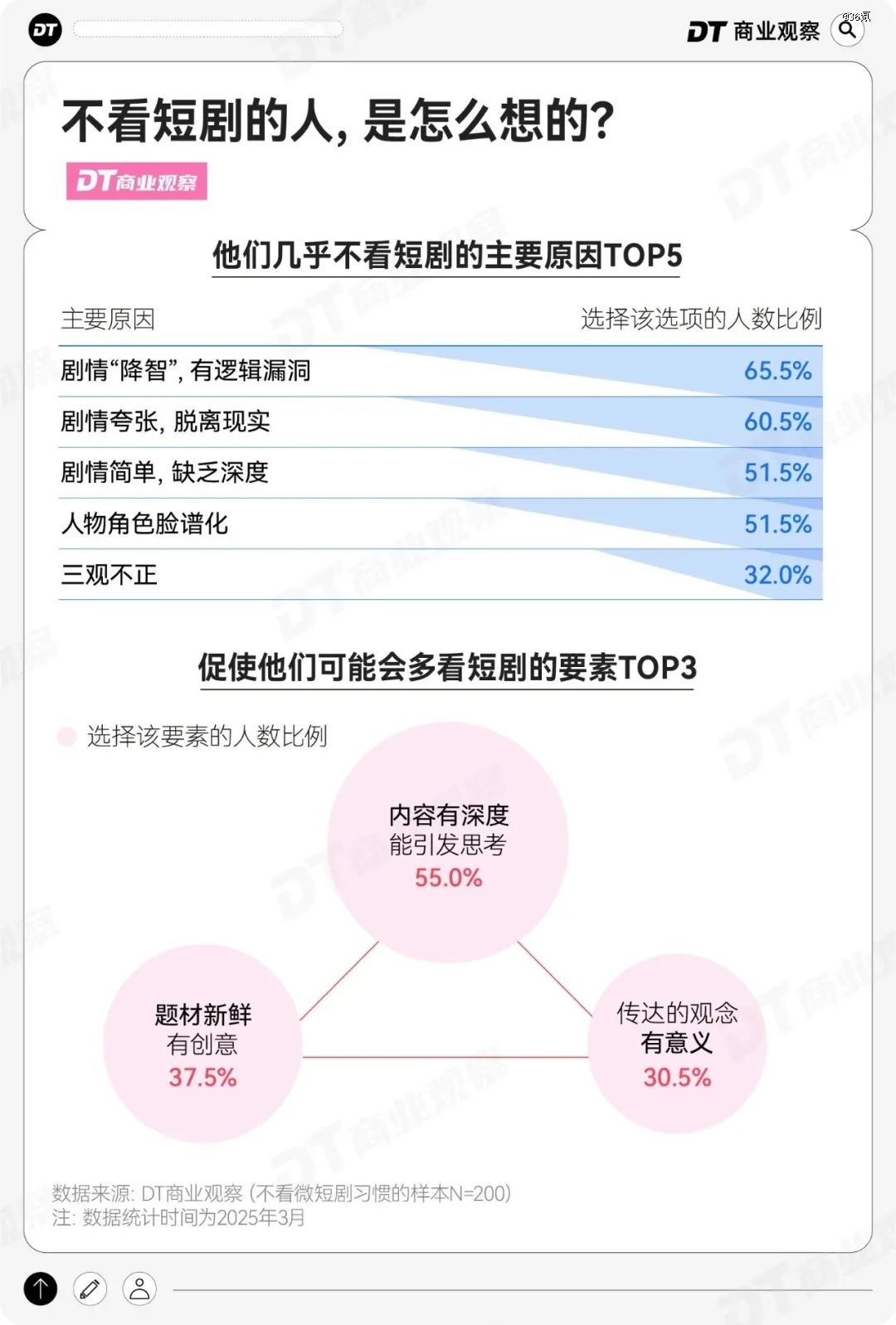 同时,超过一半不看短剧的人认为,如果未来的短剧“内容有深度,能引发思考”,会考虑多看短剧。