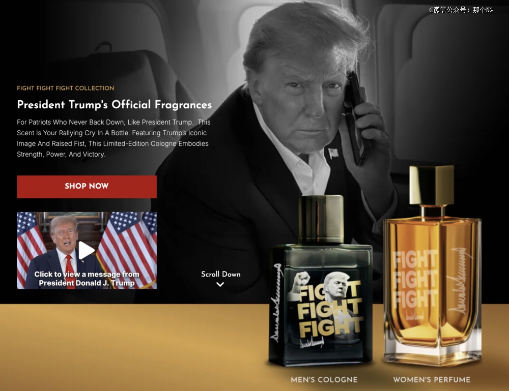 在特朗普香水官网上,所有香水被强调的风格关键词都是:力量、权力、精致和胜利,他们声称这些灵感来自“特朗普总统的历史性胜利”,是献给永不退缩爱国者的持久香氛。