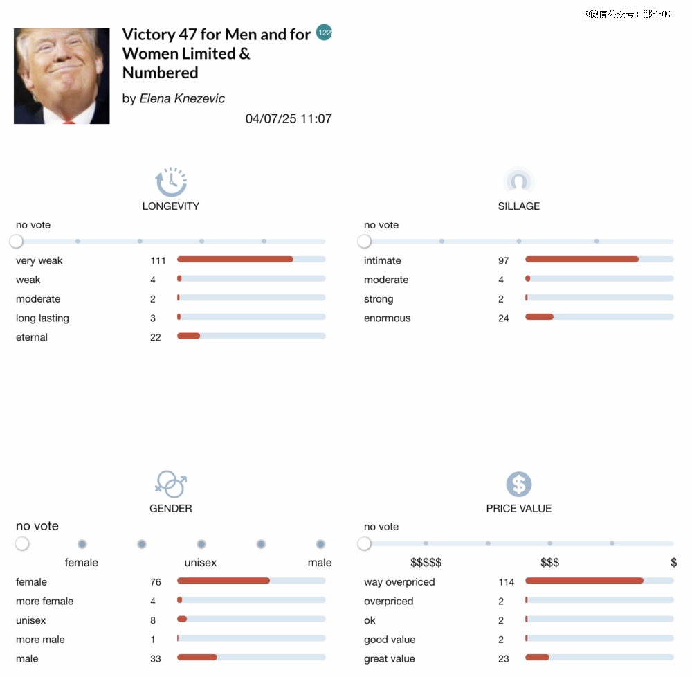 但一些事例证明,推销香水似乎并不需要费尽心机。比如最有商业头脑的美国总统特朗普,即将于本月推出的Victory 47古龙水已经受到了消费者的大量关注。