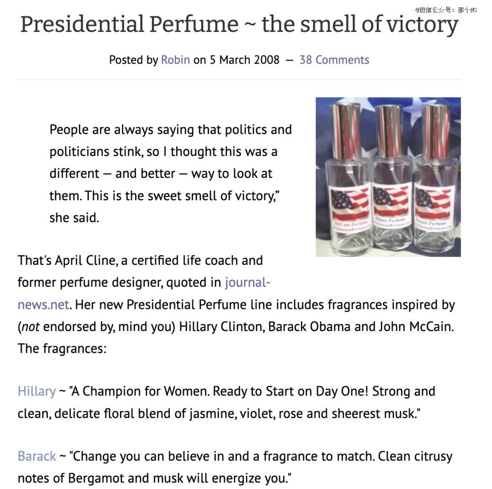 关于香气与古代政治之间的关系咱们就不追溯了,就说说香气之于现代政客的作用。