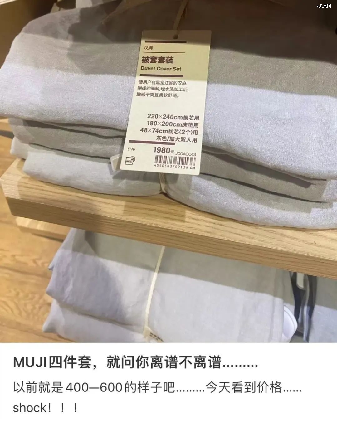 在社交平台上,多位网友留言表示无印良品定价过高,产品类型涵盖服饰、鞋帽、食品、家居等。一些评论指出,新款商品实际定价较消费者能够接受的心理价位接近翻倍,“每次逛无印良品,我都觉得价格应该是日币”。