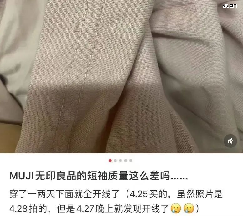 值得注意的是,价格位于高位,无印良品却并没有在产品品质上做到让所有人满意。多位网友在社交平台留言表达对产品品控的质疑,例如短袖穿了一两天就开线、衣服起球、实木桌子开裂等。