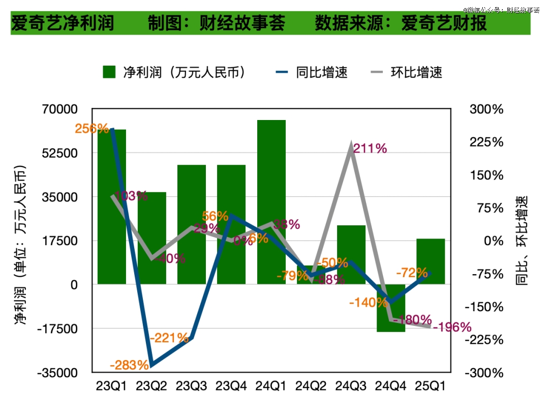 到了2025年Q1,爱奇艺减收又减利的困境仍未缓解,营收同比下滑9%,Non-GAAP营业利润,更是同比大跌57.8%。