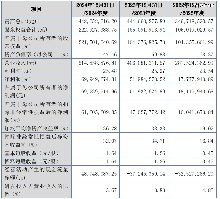 2022年、2023年、2024年(报告期),世昌股份分别实现营业收入2.82亿元、4.06亿元和5.15亿元,实现扣非后的归母净利润分别为1570.23万元、4702.78万元和6120.52万元。