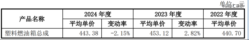 值得注意的是,与汽车产业链的大部分公司一样,世昌股份也面临产品价格年降的风险。2024年,公司塑料燃油箱总成的平均单价为443.38元,同比下降了2.15%。
