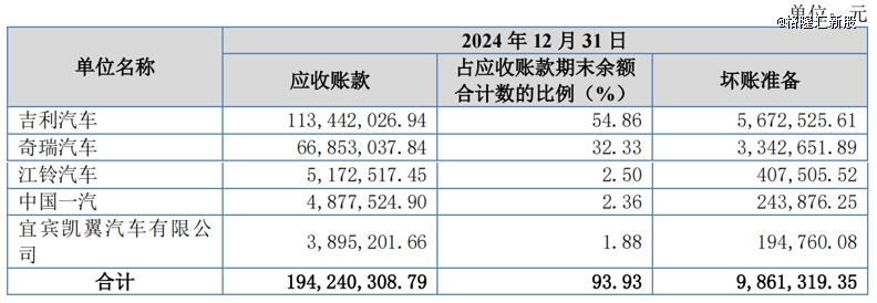 报告期内,公司前五大客户销售收入占营业收入的比重超过了92%,客户集中度较高。其中吉利汽车为公司*大客户,报告期内公司对吉利汽车的销售额占营业收入的比重分别为47.89%、42.40%、50.45%。