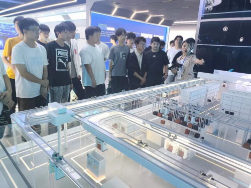 展厅参观环节,格创东智相关负责人结合智能工厂创新应用案例,通过沉浸式体验、技术展示与交流研讨,助力学生们深度融合工业智能理论与数智赋能场景实践。作为工业智能解决方案的领军企业,格创东智已累计在泛半导体制造等重点行业服务超3万家企业,打造200+整厂标杆项目。此次以项目融入教学,围绕数智赋能机电行业的落地应用,向学生们动态演示智能工厂沙盘,讲解AI技术在工业视觉质检中发挥的关键作用,以智慧能源管理解决方案引发对绿色可持续发展的深入思考,并就“智能装备开发”、“工业智能”等话题与现场学生展开热烈互动交流。