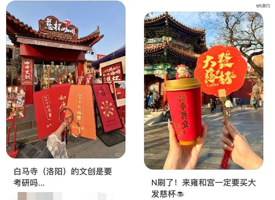 各地寺庙至少有一家“慈杯咖啡”,成为网红打卡点;
