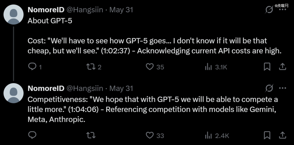 与之相应,近期有网友发博文介绍,在墨西哥举办的AI Summit峰会上,两名OpenAI公司代表透露,GPT-5即将面世。