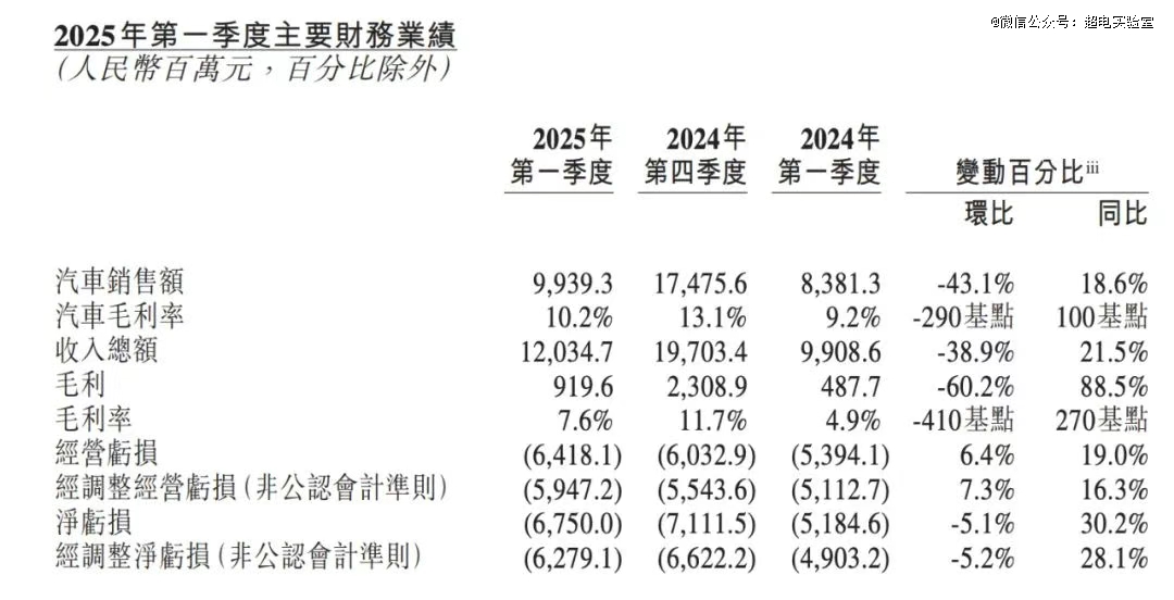 反复强调盈利背后,是备受关注的一季度财报数据,当季营收同比增长21%至120.3亿,整车毛利率为10%。目前仍然是亏损状态,同期亏损67.5亿元,同比增长30.2%,环比下降5.1%。
